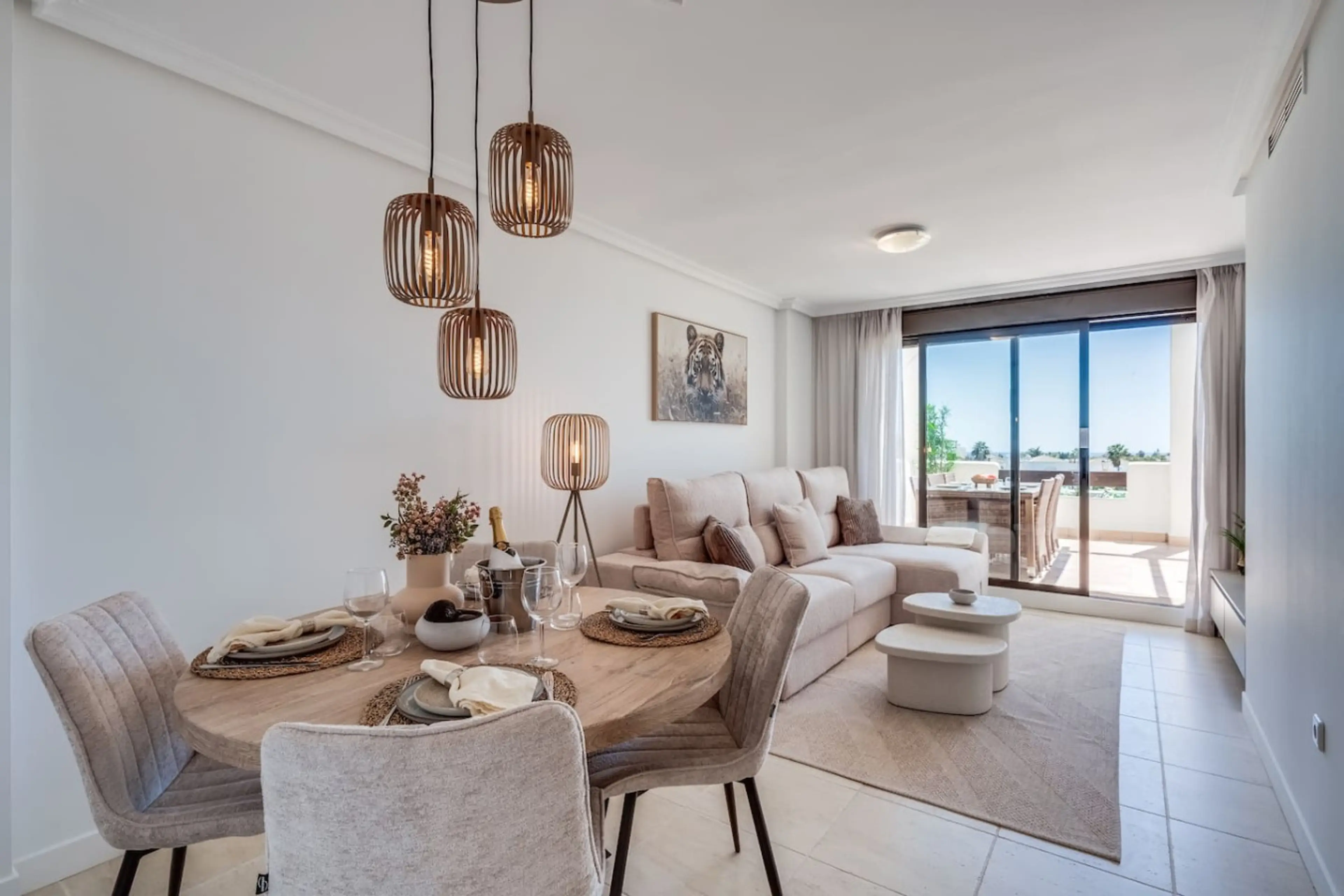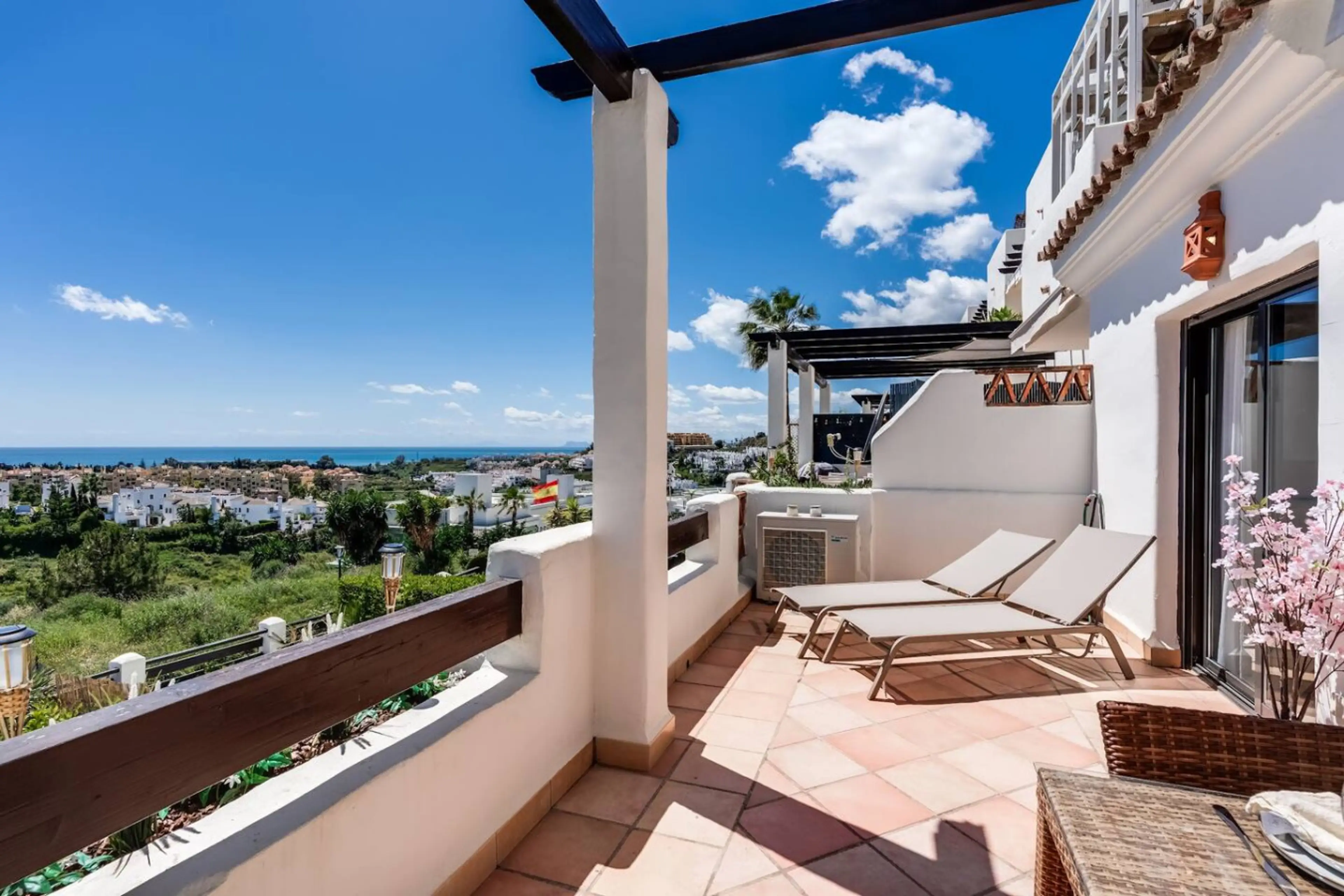 Sunset Golf ligt in een exclusieve en rustige omgeving, omgeven door groene heuvels en golfbanen. Tegelijkertijd ben je binnen enkele minuten bij de stranden, supermarkten en steden zoals Estepona en Marbella. Het grote terras met eettafel en lounge set biedt alles voor een geweldige vakantie van o...