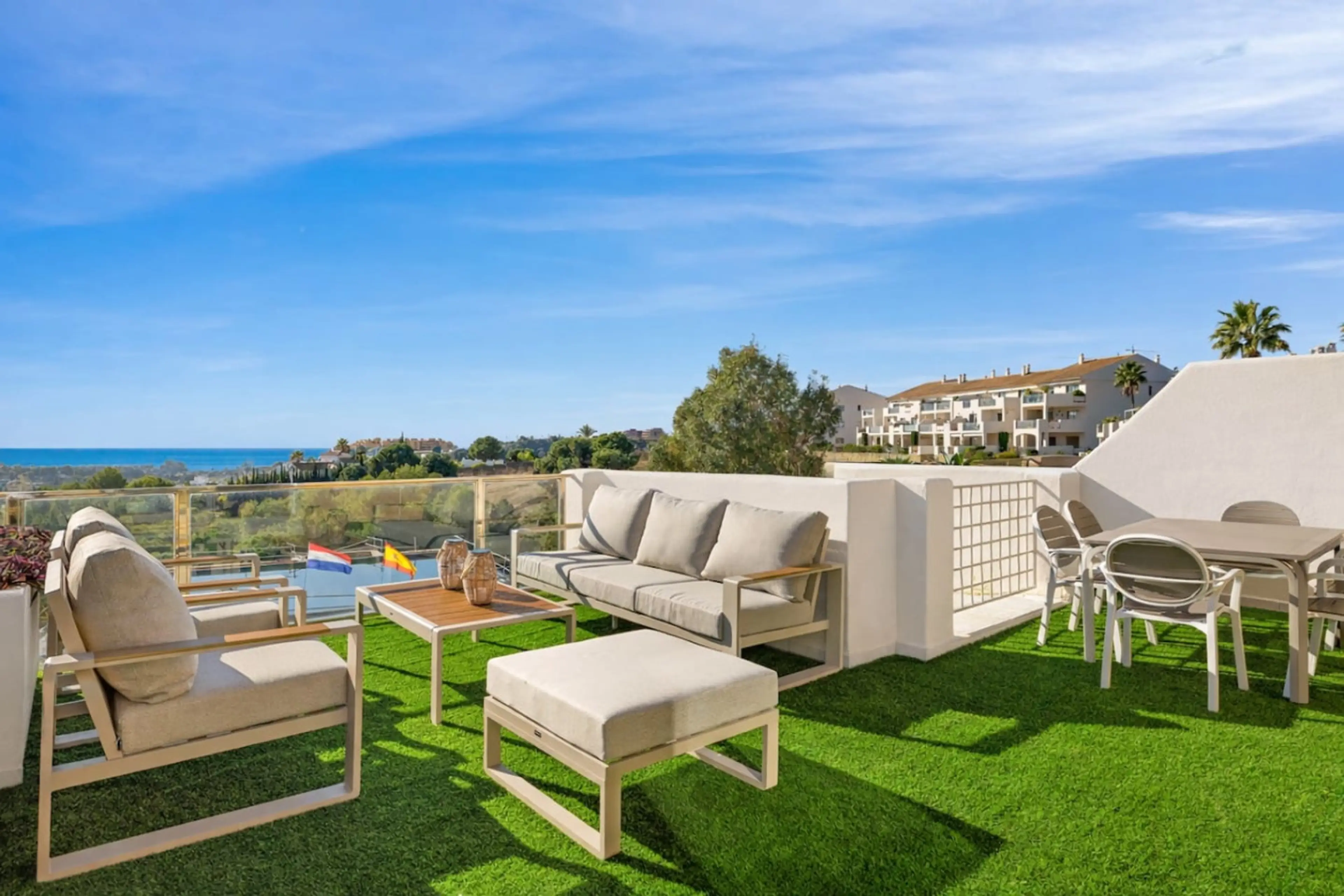 Enjoy a relaxing stay in this stylish 3-bedroom penthouse in Resina Golf, Estepona. Wake up to beautiful sea views and unwind by one of the two shared swimming pools. The beach, restaurants and supermarkets are just a short drive away (or a longer walk). Perfect for couples, families or golfers look...